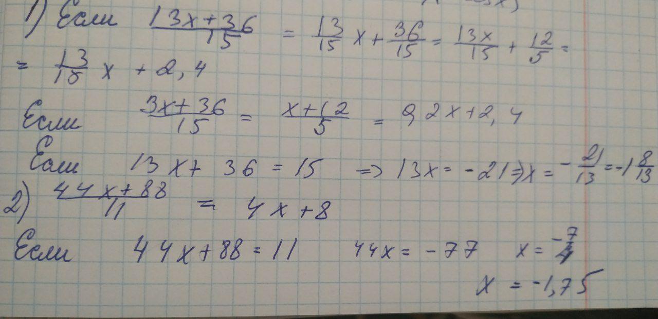 Помогите прошу13×х+36):15; 2)(44х+88):11