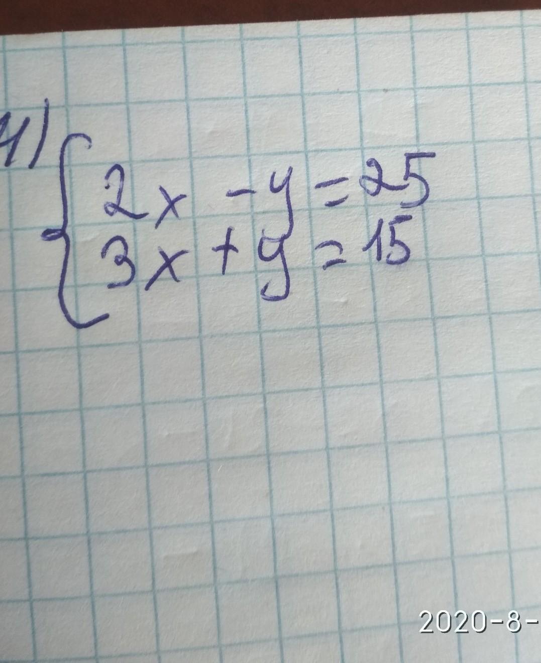 суммируем выражение и получается что y уходит остается 5х=40 отсюда находим х и х подставляем в одно из выражений и находим y
