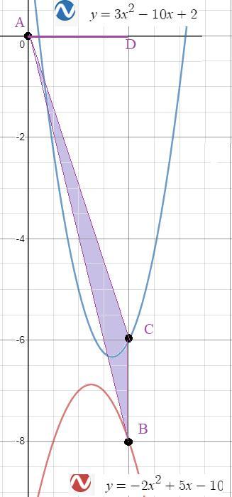 Найдите наибольшее и наименьшее значение площади треугольника, у которого одна из вершин есть начало координат, а две другие принадлежат кривым