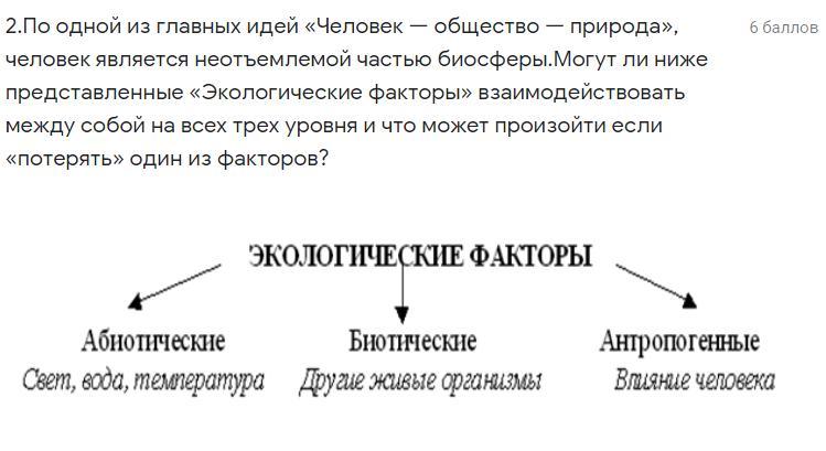2)если потерять антропогенный фактор ниче не произойдёт, а если потерять биотический или абиотический фактор то не может существоват жизнь