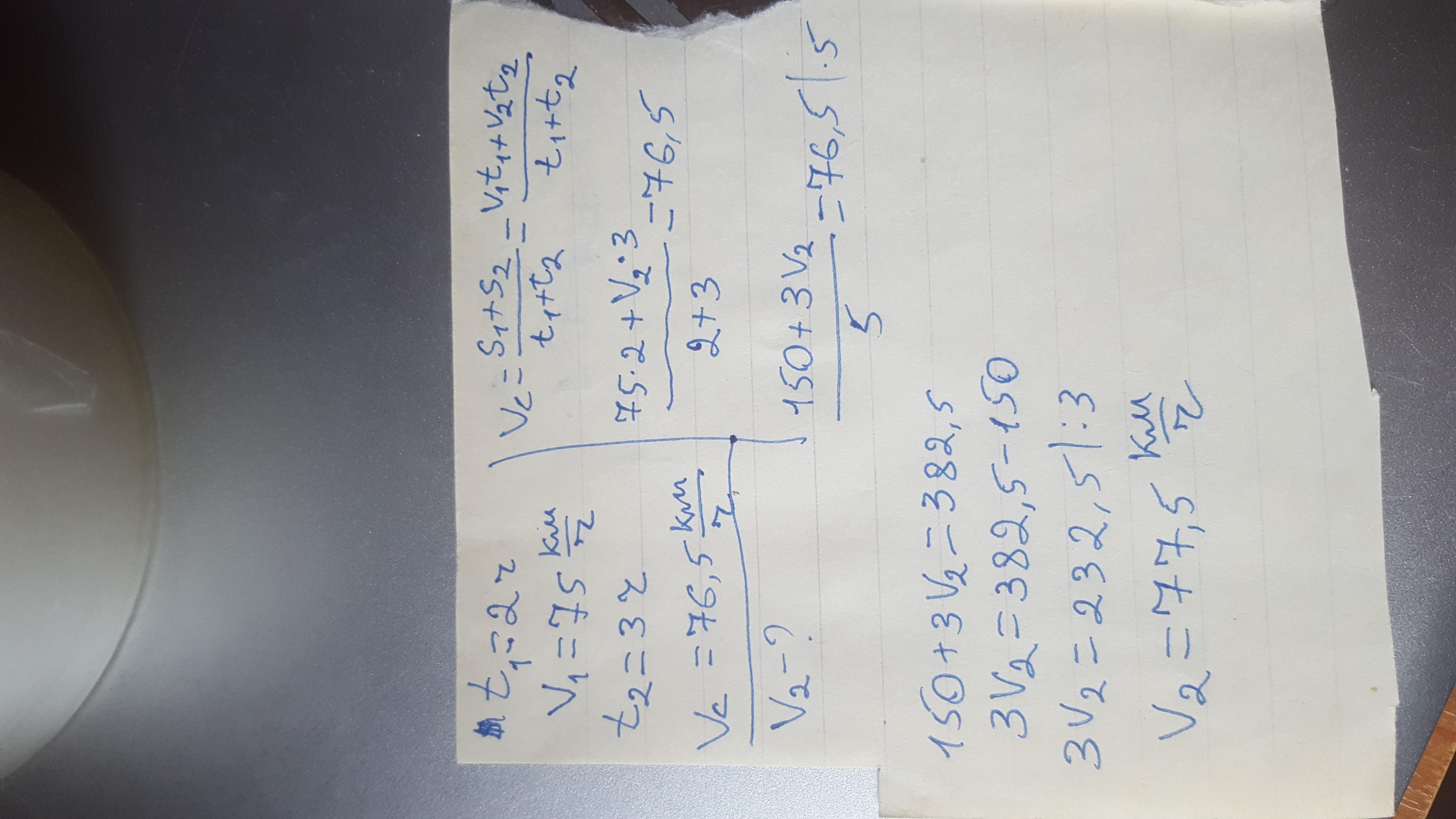 первую часть пути автобус прошел за 2ч со скоростью 75км\ч, а вторую часть - за 3ч .Его средняя скорость на всем пути составила 76,5 км/ч . Найдите скорость автобуса на втором участке пути