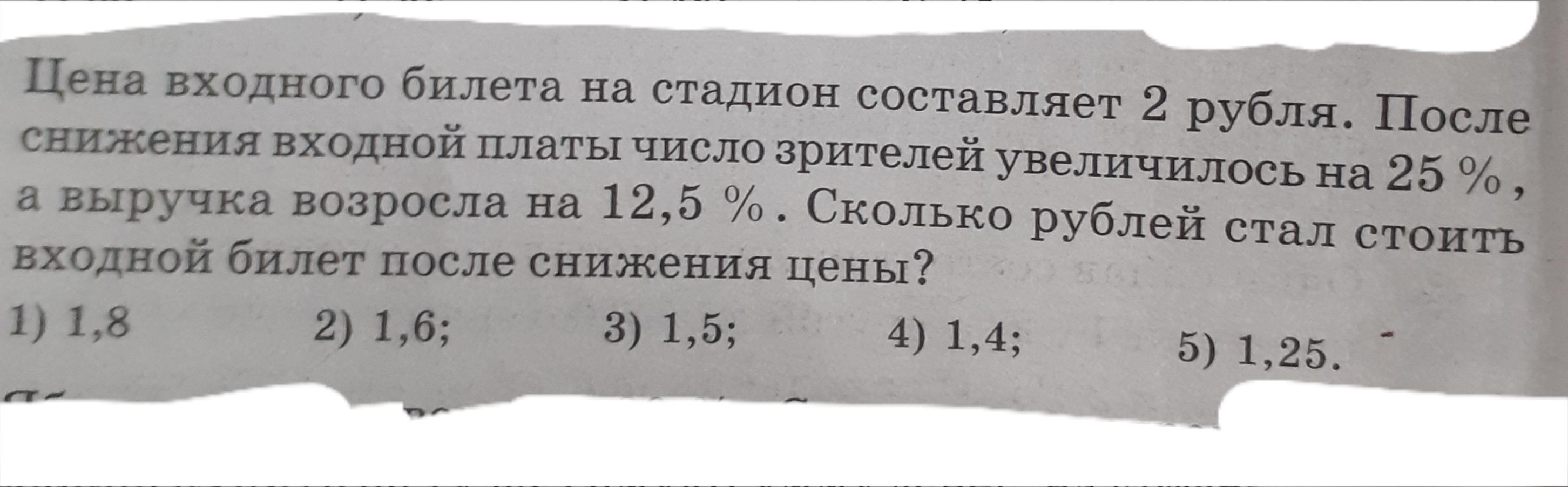 тогда число зрителей после понижения -1,25у. Выручка до снижения - 2у, тогда после 2у+2у*0,125=2,25у.
