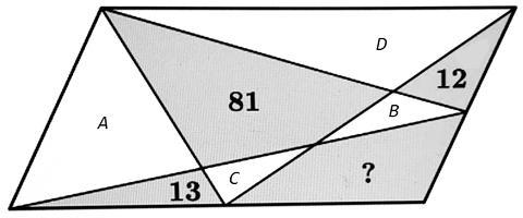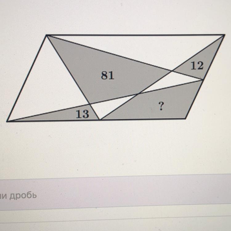 соединили с вершинами, как показано на картинке. Даны площади трёх