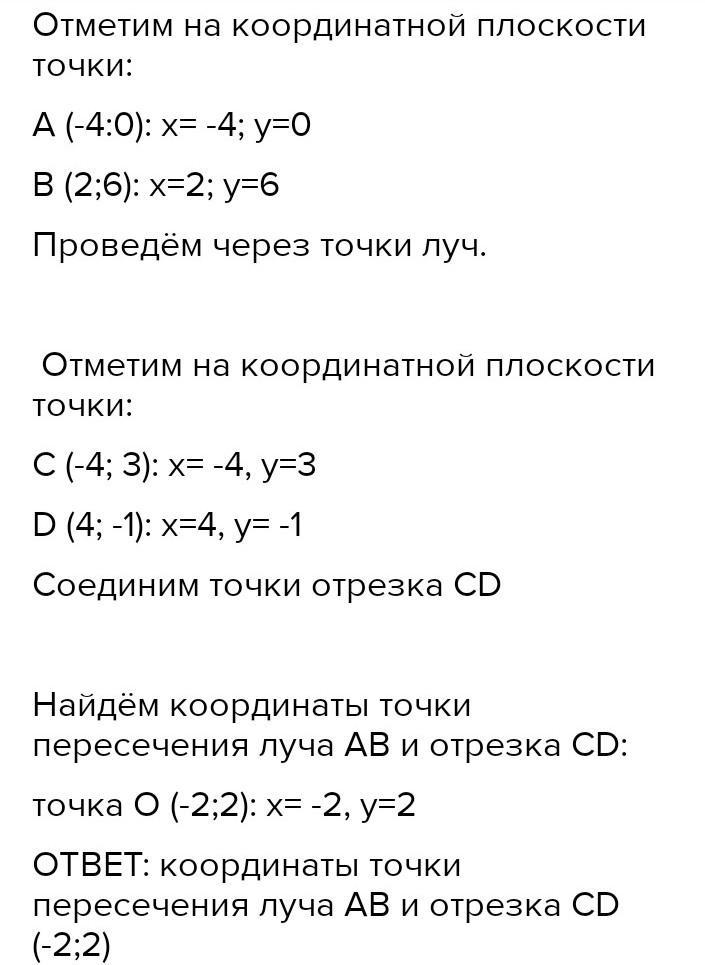 ОТВЕТ: координаты точки пересечения луча AB и отрезка CD (-2;2)