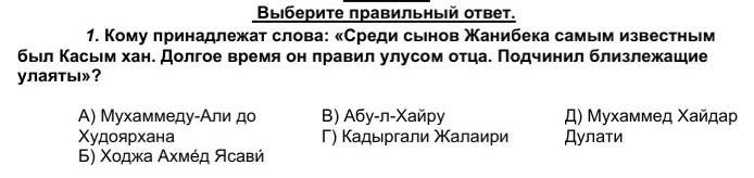 1. Кому принадлежат слова: «Среди сынов Жанибека самым известным был Касым