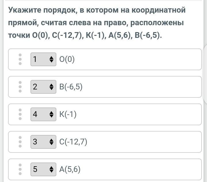 На самом левом краю будет самая маленькая, с самым большим минусом, и по возрастанию: