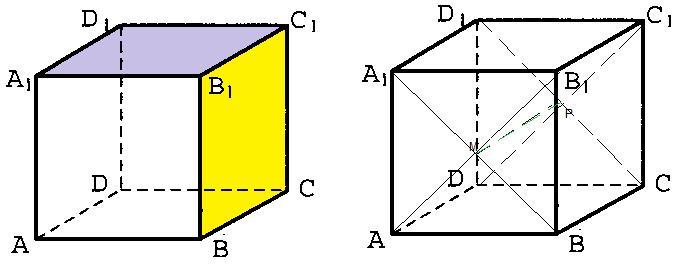 2)Все грани куба-квадраты. Диагонали квадрата взаимно -перпендикулярны . МР ,линия пересечения граней (AB₁C₁D) и (BA₁D₁С) . Значит линейный угол данного двугранного ∠АМВ=90° ⇒данные плоскости перпендикулярны.