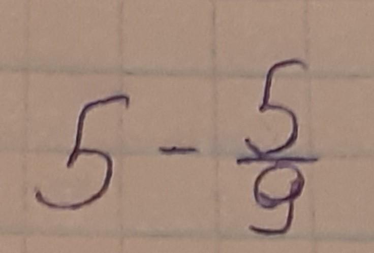 5 - 5/9 = 4 9/9 - 5/9 = 4 4/9