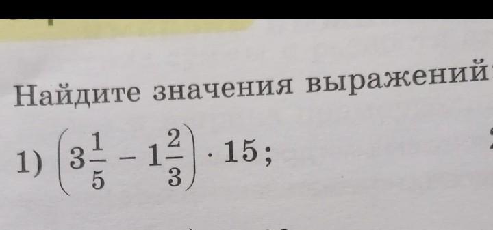 \displaystyle(3\frac{1}{5}-1\frac{2}{3})*15=\displaystyle(\frac{16^{/3}}{5}-\frac{5^{/5}}{3})*15=\frac{48-25}{15}*15=23
