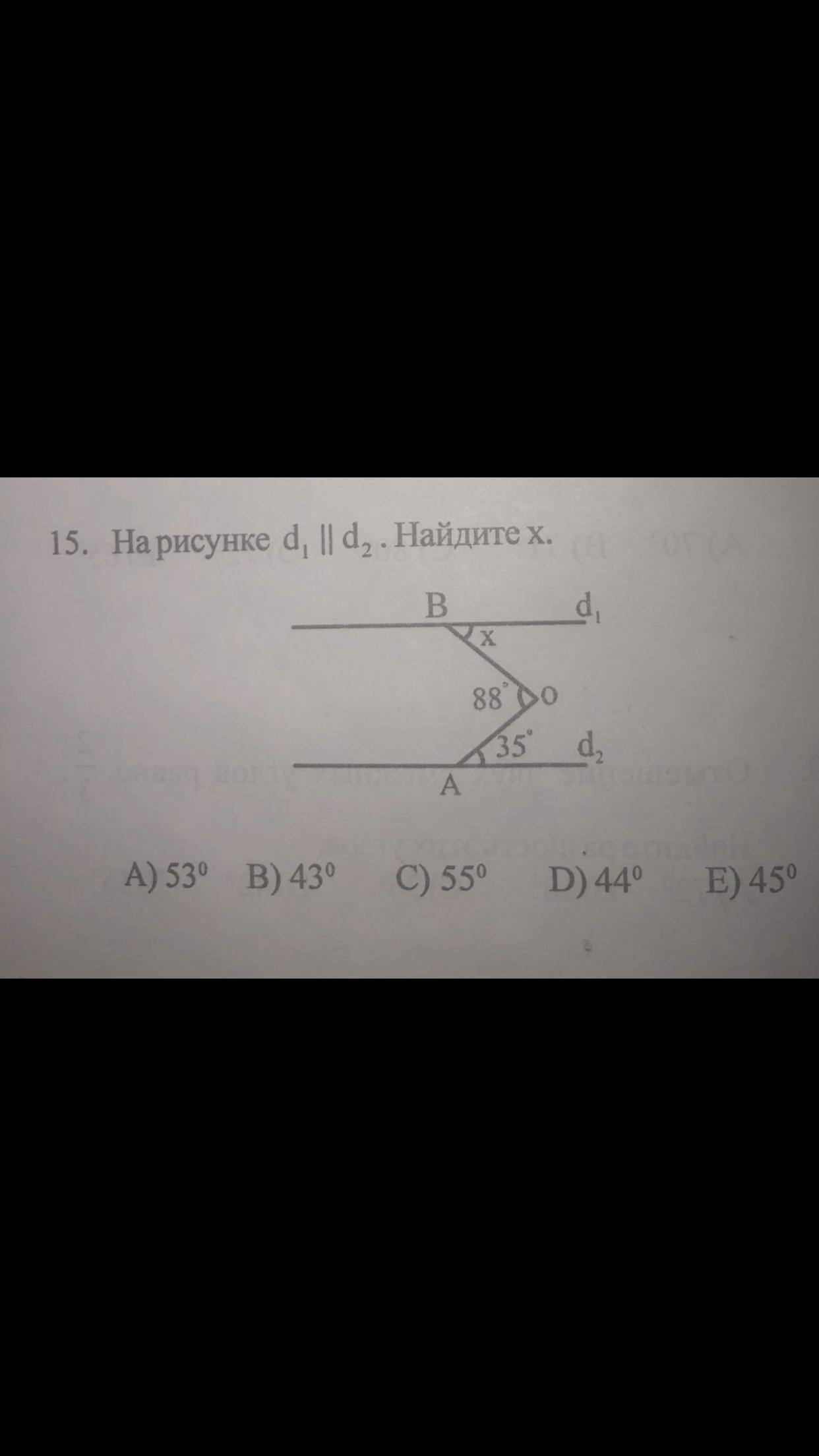 Номер 15: продлеваем BO,чтобы она пересекла d2.Образуется треугольник.1 угол-35,другой 180-88=92,поскольку он развернутый.третий=180-(92+35)=53.Думаю это ответ,лучше проверить.