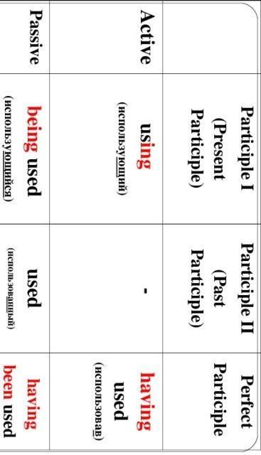 Суффикс –ing мы добавляем, если необходимо использовать причастие настоящего времени (present participle), а суффикс –ed, нужно употреблять для причастия прошедшего времени (past participle).