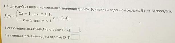функция y=2x+1 возрастающая, а у=-х+4 убывающая, значит в точке х=1 имеем максимум у=2+1=3