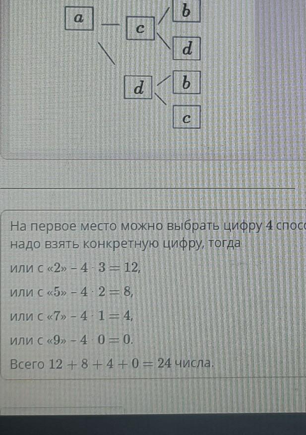 Вычисли количество трехзначных чисел, составленных из цифр 2, 5, 7, 9 так, чтобы вторая цифра была меньше третьей.