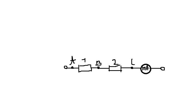 Коло складається з двох послідовно з'єднаних ре- зисторів опорами R = 12 Ом і R = 4 Ом (див. ри- сунок). Міліамперметр показує силу струму в колі 8 мА. Якими будуть показання вольтметра, підклю- ченого між точками А і В? В і С? Ai С? ПОМОГИТЕ ПЖЖ!!