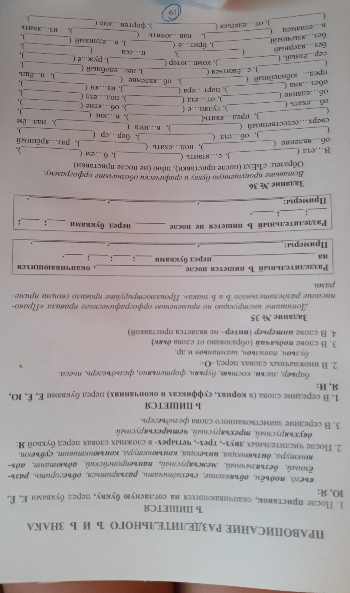 Въезд (после приставки), съязвить (после приставки), бьём (не после приставки), объявление (после приставки), подъехать (после приставки), разъярённый (после приставки), объезд (после приставки), барьер (не после приставки), сверхъестественный (после приставки), вьюга (не после приставки), нальём (не после приставки), предъявить (после приставки), вьюн (не после приставки), объехать (после приставки), гулянье (не после приставки), объятие (после приставки), объедание (после приставки), отъезд (после приставки), подъезд (после приставки), обезьяна (не после приставки), портьера (не после приставки), изъян (после приставки), предъюбилейный (после приставки), объявление (после приставки), пьёшь (не после приставки), съёжиться (после приставки), несъедобный (после приставки), серьёзный (не после приставки), компьютер (не после приставки), ружьё ( не после приставки), безъядерный (после приставки), пьеса (не после приставки), безъязычный (после приставки), бритьё (не после приставки), въедливый (после приставки), вьетнамец (не после приставки), навьючить (не после приставки), изъявить (после приставки), отъедаться (после приставки), фортепьяно (не после приставки)