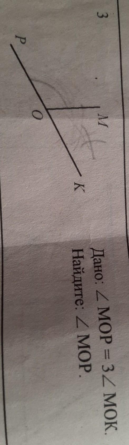 Пусть∠МОК=х, тогда по условию задачи ∠МОР=3х,