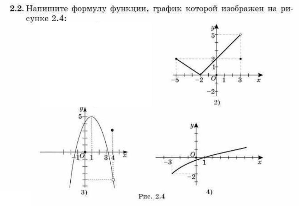 2)\ \ y=\left\{\begin{array}{l}-\dfrac{2}{3}\, x-\dfrac{4}{3}\ ,\ esli\ \ -5\leq x\leq -2\ ,\\x+2\ ,\ esli\ -2<x<3\ ,\\2\ ,\ esli\ x=3\ .\end{array}\right\\\\\\3)\ \ \ y=\left\{\begin{array}{l}-(x-1)^2+5\ ,\ esli\ x\ne 4\\3\ ,\ esli\ x=4\ .\end{array}\right\\\\\\4)\ \ y=\sqrt{x+3}-2