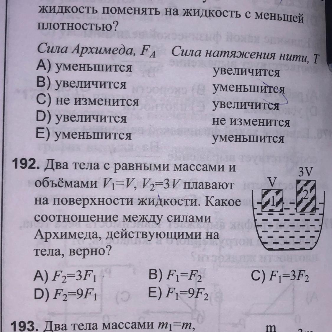 Поскольку второе тело в три раза больше в обьëме чем первое, тогда на второе тело в три раза больше действует сила Архимеда