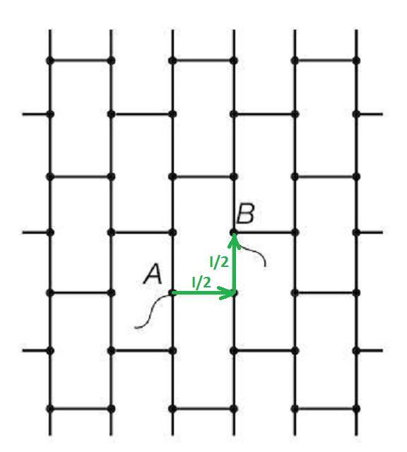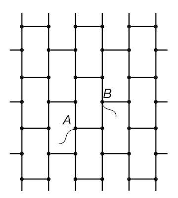 ПОМОГИТЕ С ФИЗИКОЙ, ПОЖАЛУЙСТА. Из бесконечной квадратной сетки с сопротивлением каждого ребра 1 Ом удалили часть проводников — так, как показано на рисунке. Найдите сопротивление между точками A и B. Ответ выразите в омах, округлите до целого числа.
