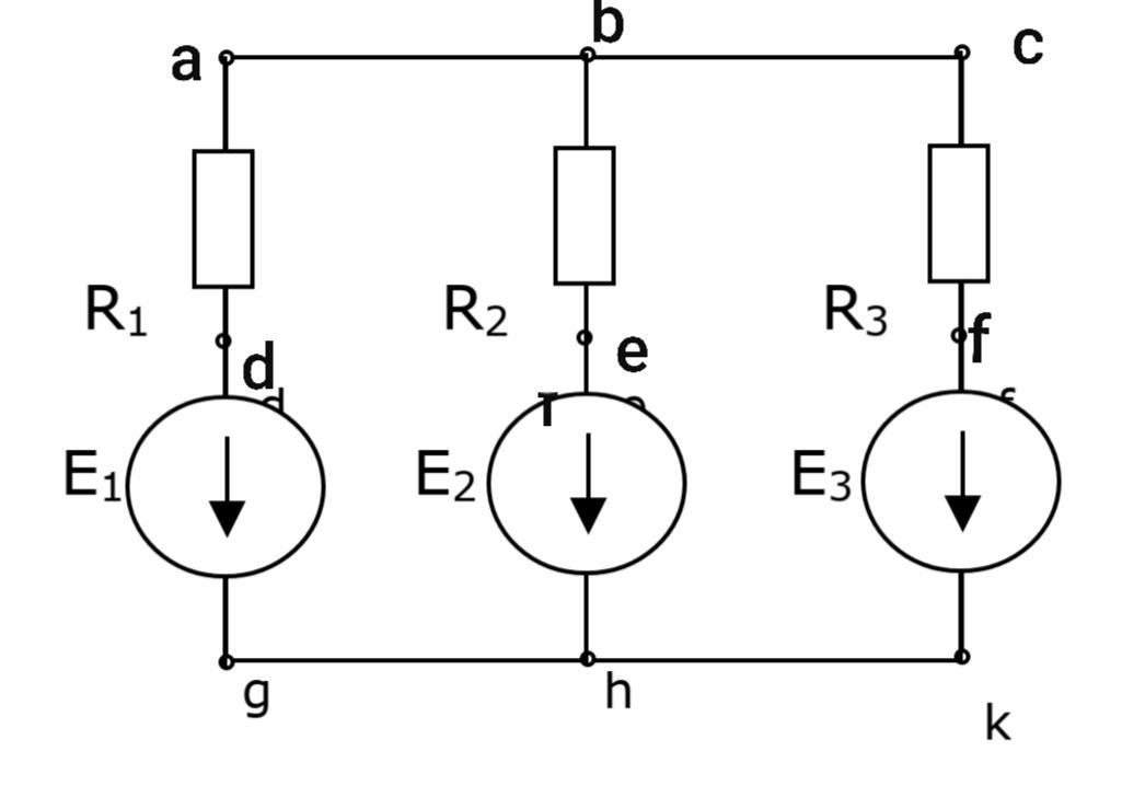 ПОМОГИТЕ С РЕШЕНИЕМ, ПОЖАЛУЙСТА Исходные данные: E1 = 7 В, E2 = 6 В, E3 = 92 В; R1 = 1 Ом,R2 = 2 Ом,R3 = 10 Ом. Найти: силу тока в резисторах: R1, R2, R3. значения напряжения: Uae, Uef, Ubg. Составить баланс мощности.