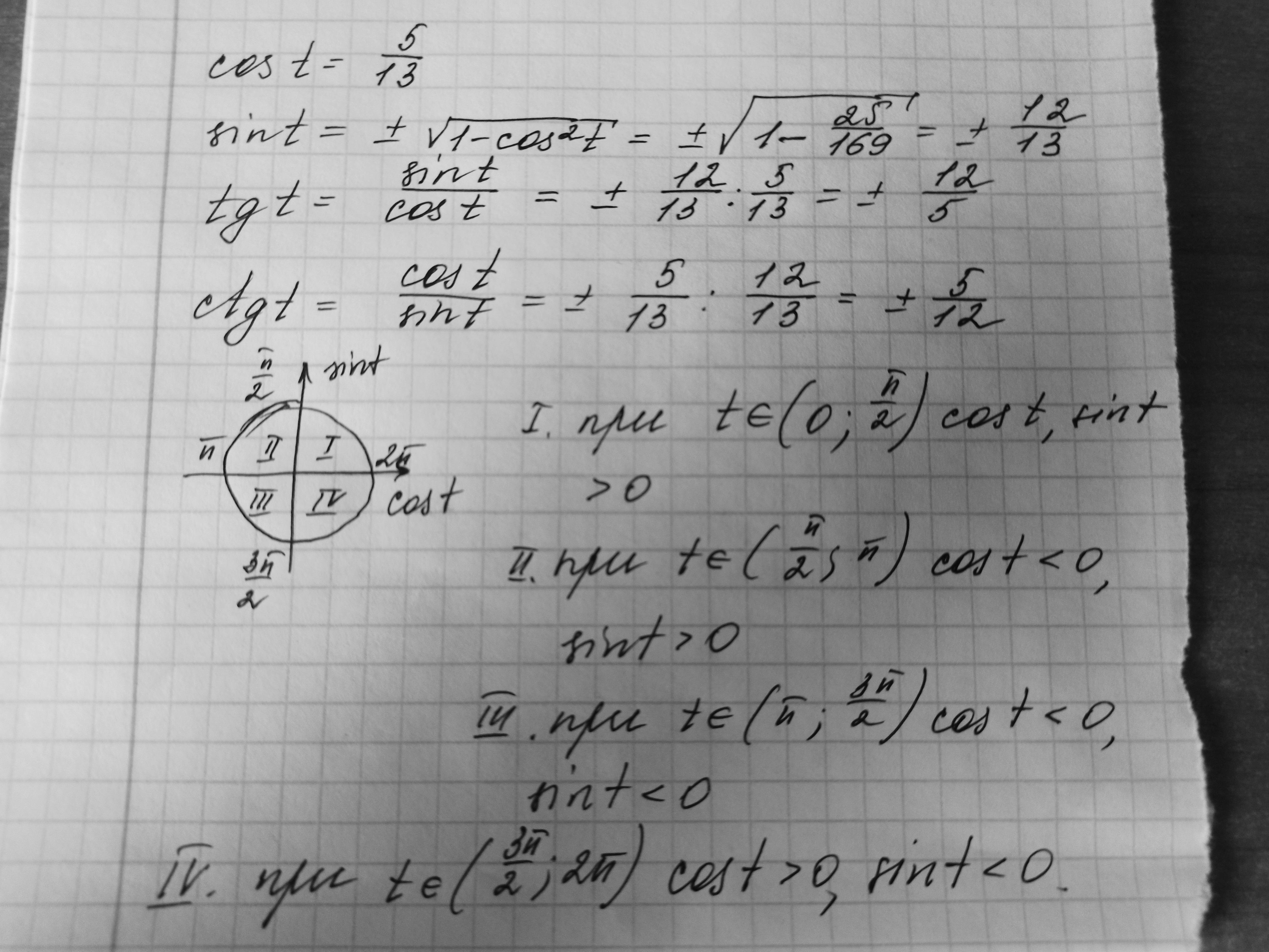 В задании не указано какой четверти принадлежит угол,так что выбираете значения функций исходя из заданного угла,пояснение привел.