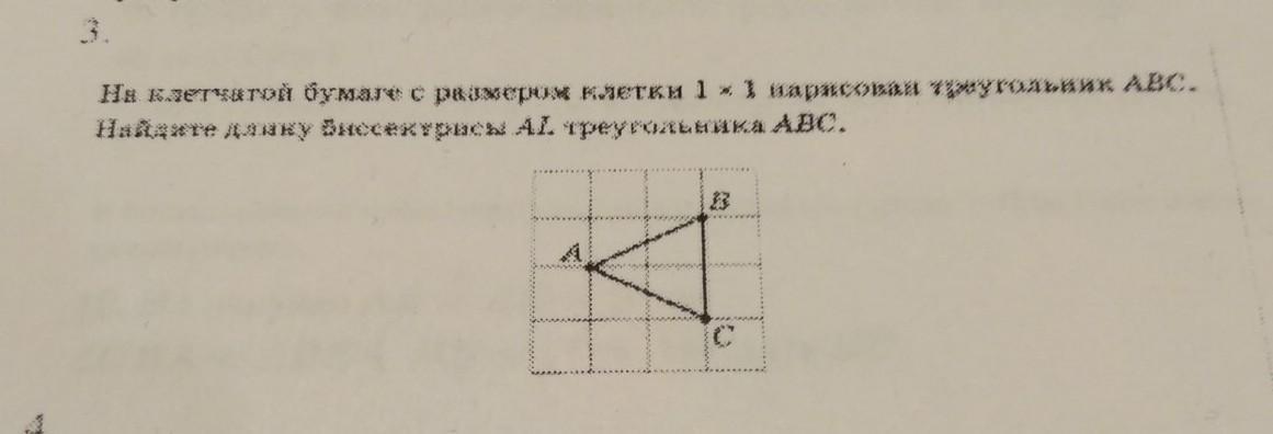 2 клетки = 1см. (т.к. размер клеток 1×1), а если провести биссектрису из точки А к стороне СВ, то получим биссектрису АI в размере 2ух клеток