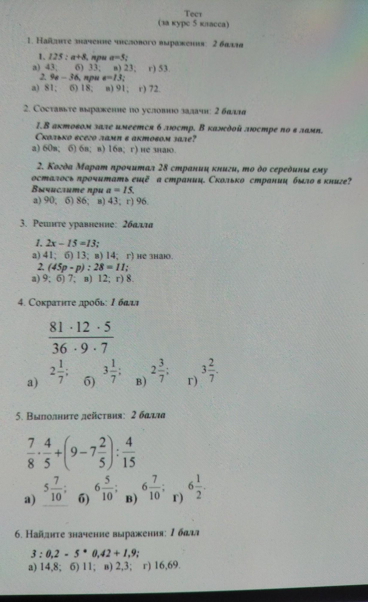 Тест за курс 5 класса ПОМОГИТЕ РЕШИТЬ