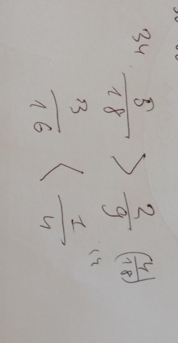 34. 5/18 больше 2/9 (2/9=4/18)