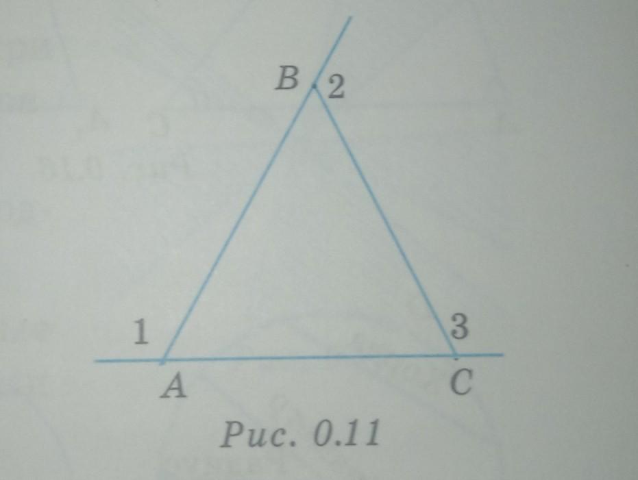 Какова сумма внутренних углов треугольника?по рисунку 0.11 запишите это коротко на математическом языке.Помогите пж