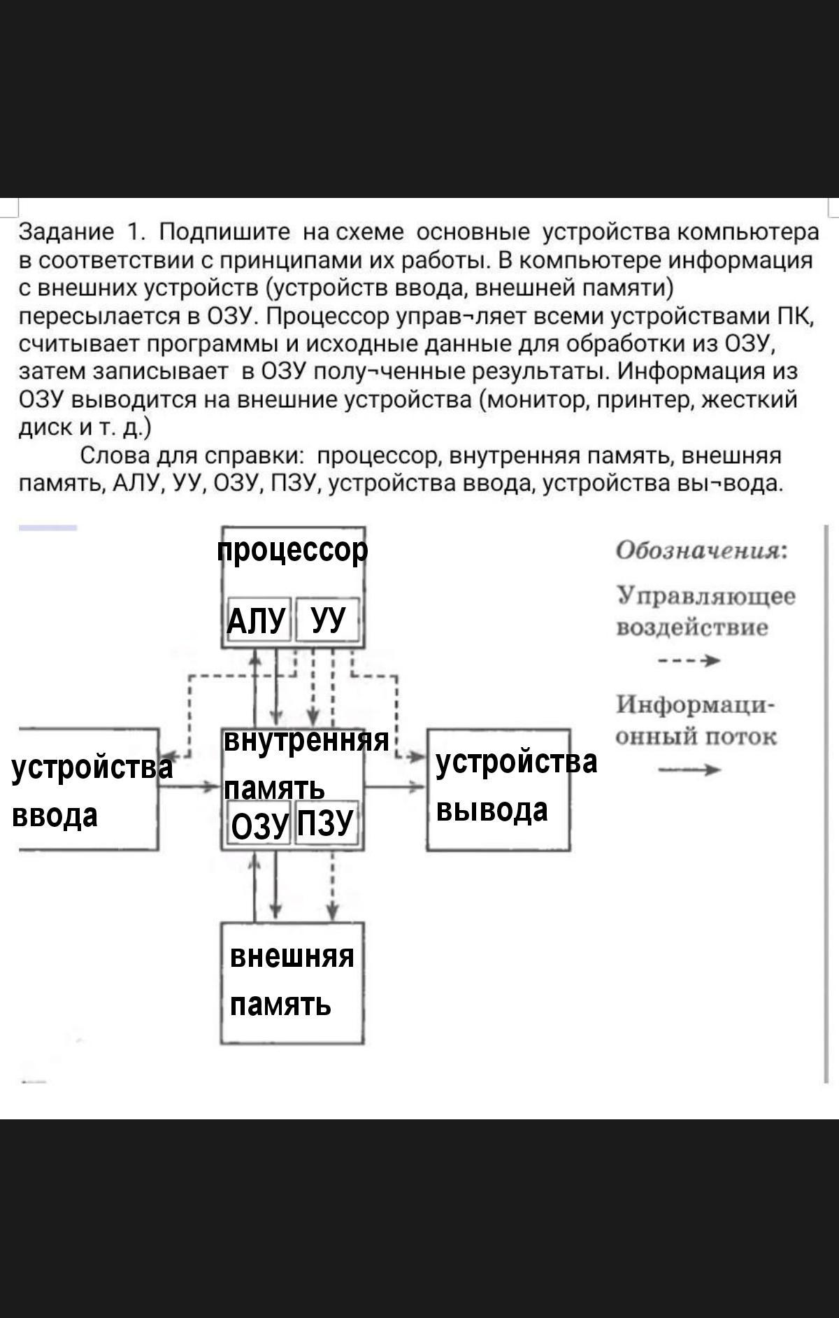 ЗУ - запоминающее устройство (ОЗУ - оперативное, ПЗУ - постоянное), память для хранения программ и данных