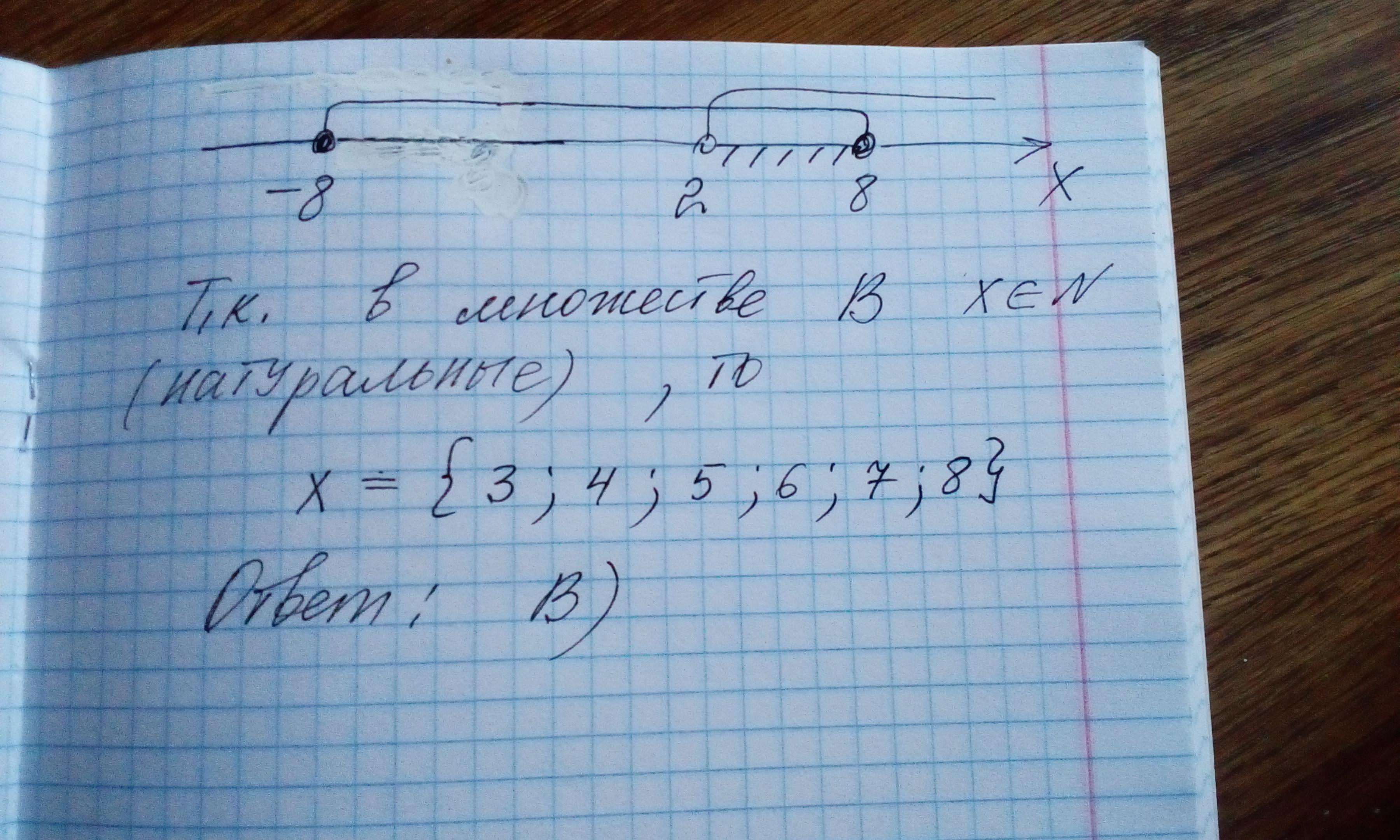 но т.к x ∈N , то x ={ 3 ; 4 ; 5 ; 6 ; 7 ;8 } → B)