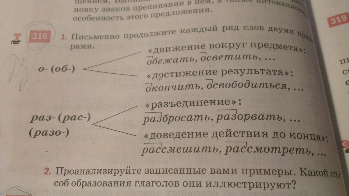 -описать, окрасить, одуматься.