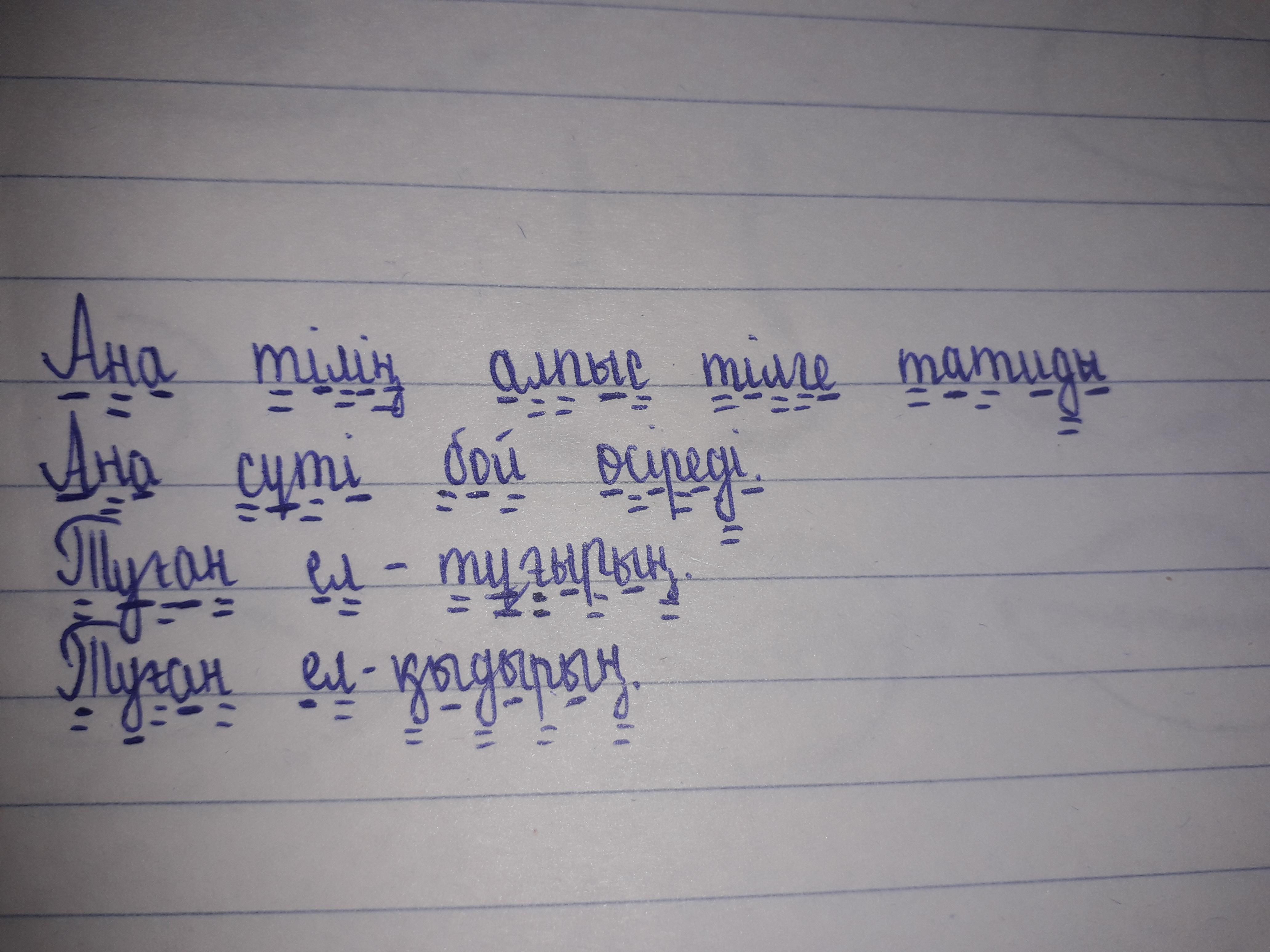 дауыссыз дыбыстардың астын екі сызықпен сызыңдар.