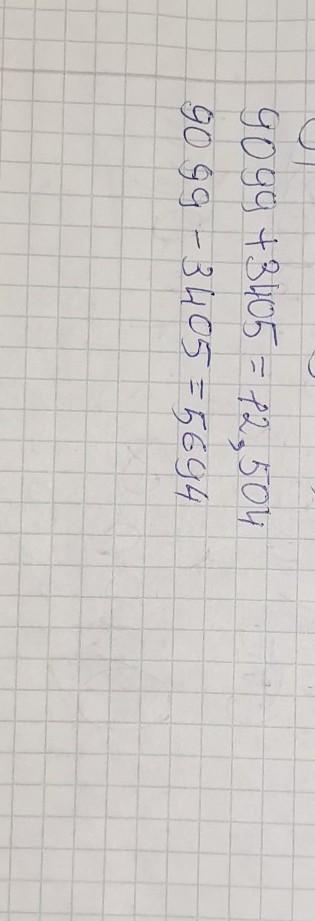 1) 9099 + 3405 = 12504 - сумма чисел.