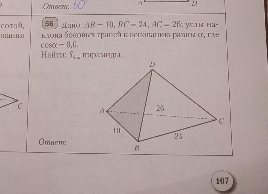 sбок. =sосн./cosα=120/0.6=1200/6=200