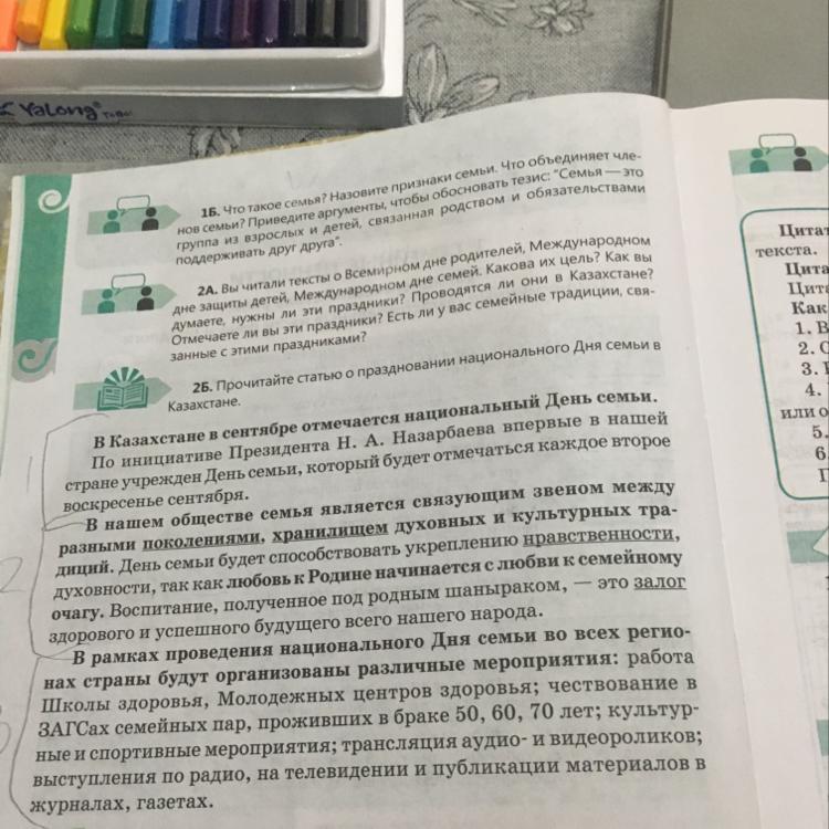 2Б Прочитайте статью о праздновании национального Дня семьи в Казахстане ,составьте цитатный план