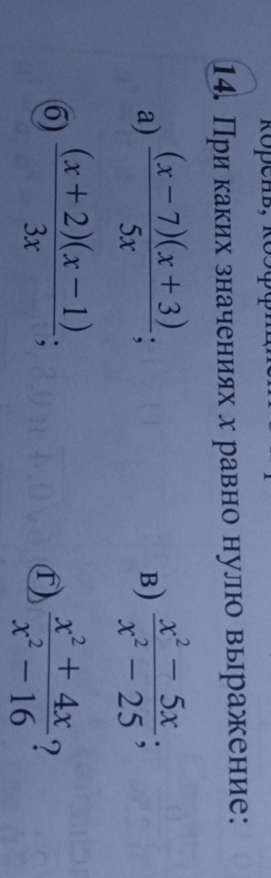 3)\ \ \ \dfrac{x^2-5x}{x^2-25}=0\ \ \  \Longleftrightarrow \ \ \left\{\begin{array}{l}x^2-25x=0\\x^2-25\ne 0\end{array}\right\ \ \left\{\begin{array}{l}x\, (x-5)=0\\(x-5)(x+5)\ne 0\end{array}\right\\\\\\\left\{\begin{array}{l}x_1=0\ \ ,\ \ x_2=5\\x\ne -5\ ,\ x\ne 5\end{array}\right\ \ \ \Longrightarrow \ \ x=0