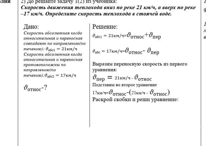 Vт + Vр= 21 (1) Vт + Vт -17=21 2 Vт= 38 Vт=38:2
