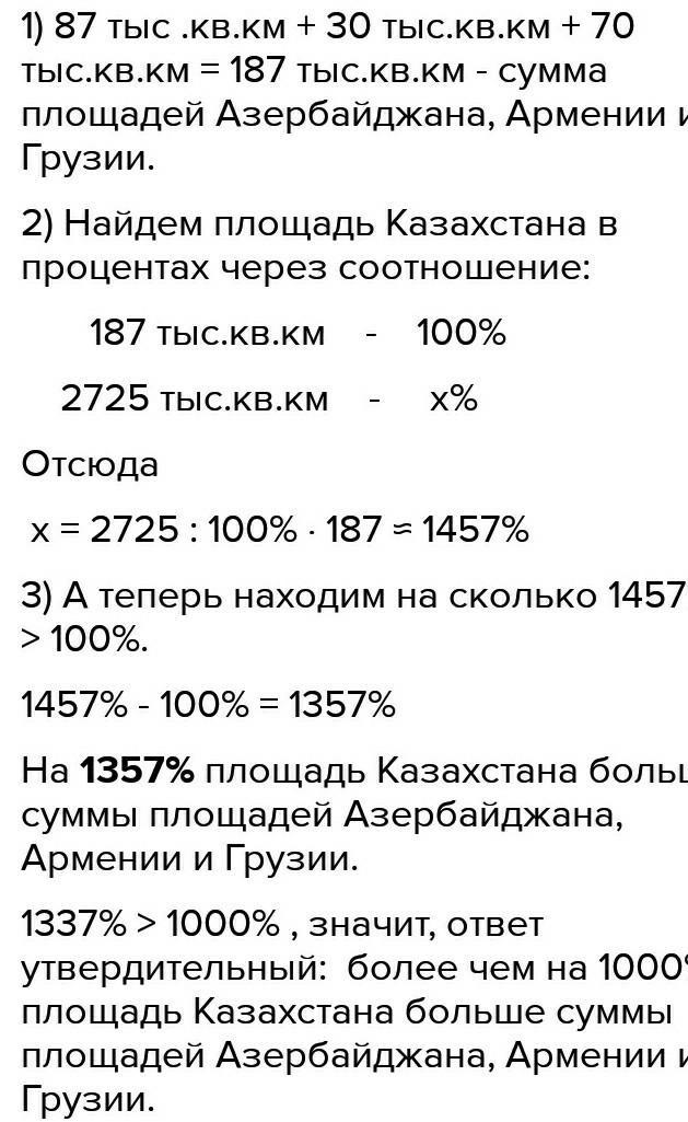 1. Верно ли, что площадь Казахстана (2725 тыс. кв. км) более чем