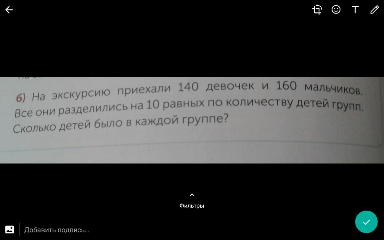 3 б) на эксукурсию приехали 140девочек и 160иальчиков. Все они разделились на 10 равных по количеству детей групп. Сколько детей было в каждой группе?