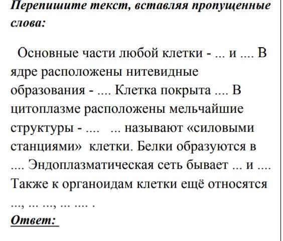 Основные части любой клетки ядро и цитоплазма. В ядре расположены нитевидные образования - хромосомы. Клетка покрыта мембраной. В цитоплазме расположены мельчайшие структуры - органоиды. Митохондрии называют "силовыми станциями" клетки. Белки образуются в рибосомах. Эндоплазматическая сеть бывает гладкая и шероховатая. Также к органоидам клетки еще относятся ядро, клеточная и ядерная мембрана, митохондрии, комплекс Гольджи, лизосомы.