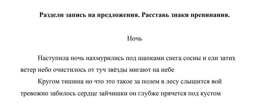 Наступила ночь. Нахмурились под шапками снега сосны и ели. Затих ветер, небо очистилось от туч. Звёзды мигают на небе.