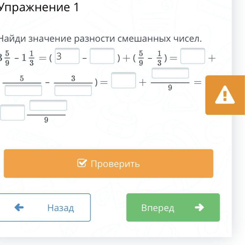 3 5/9 - 1 1/3 = (3 - 1) + (5/9 - 1/3) = 2 + (5/9 - 3/9) = 2 + (5-3)/9 = 2 2/9