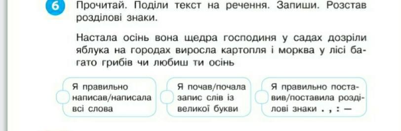 Настала осінь. Вона щедра господиня. У садах дозріли яблука, на городах виросла картопля і морква, у лісі багато грибів. Чи любиш ти осінь?