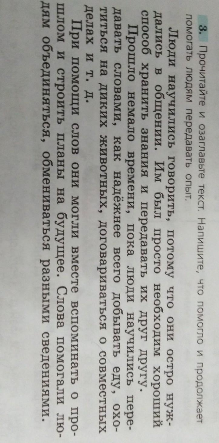 Прочитай Озаглавь текст напишите что помогло и продолжает помогать людям передавать опыт