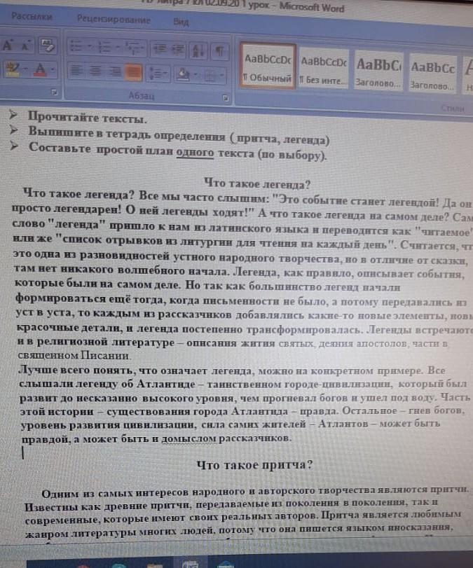 Прочитайте текст Выпишите в тетрадь определение притчи легенды Составьте простой план
