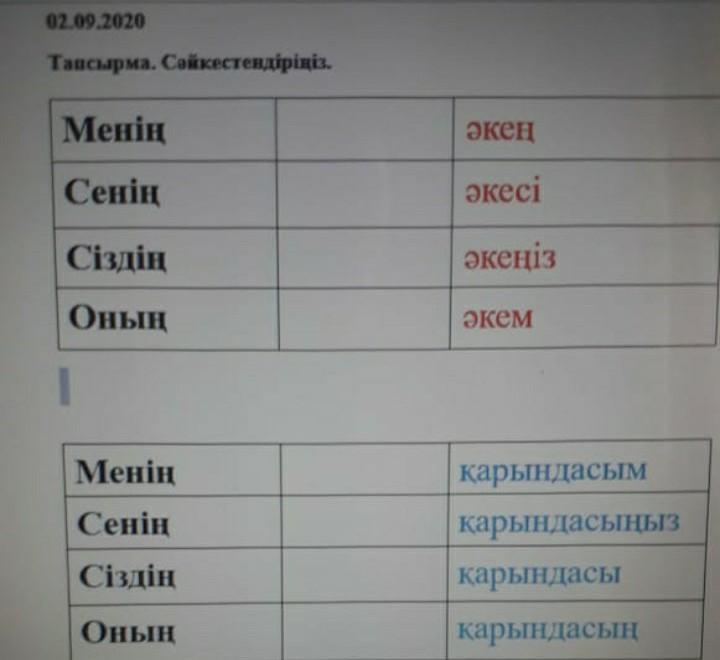 менің әкем сенің әкен сіздің әкеніз оның әкесі