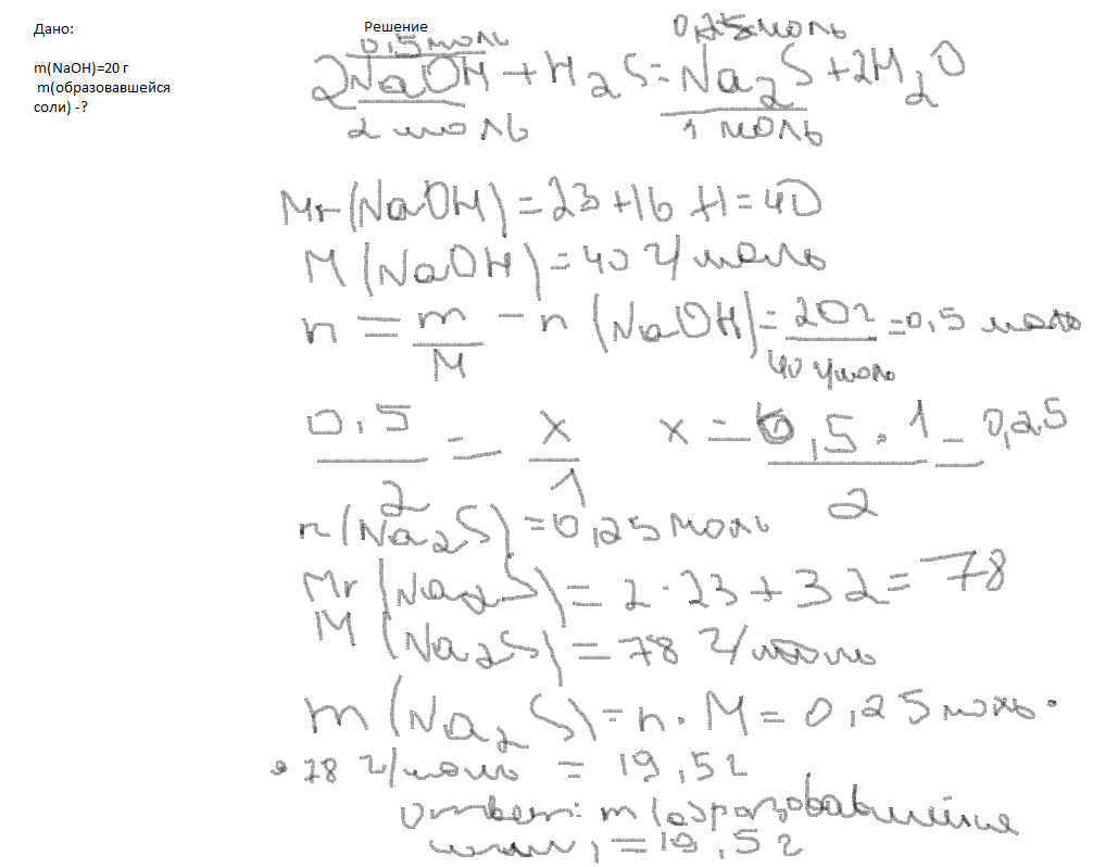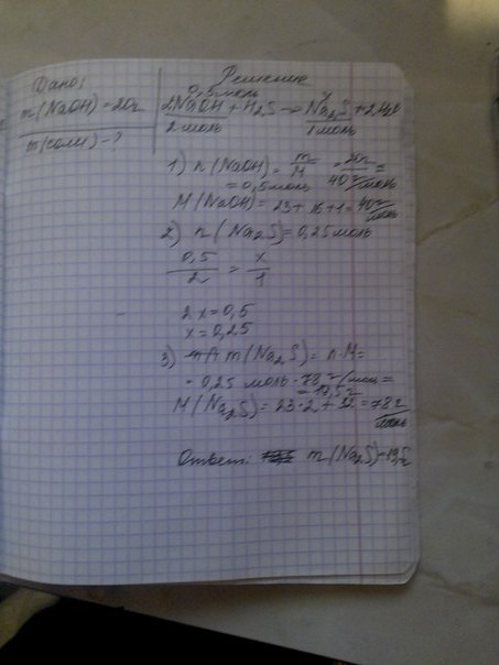через раствор ,содержащий 20 г гидроксида натрия пропустили сероводород. Определите массу образовавшийся соли