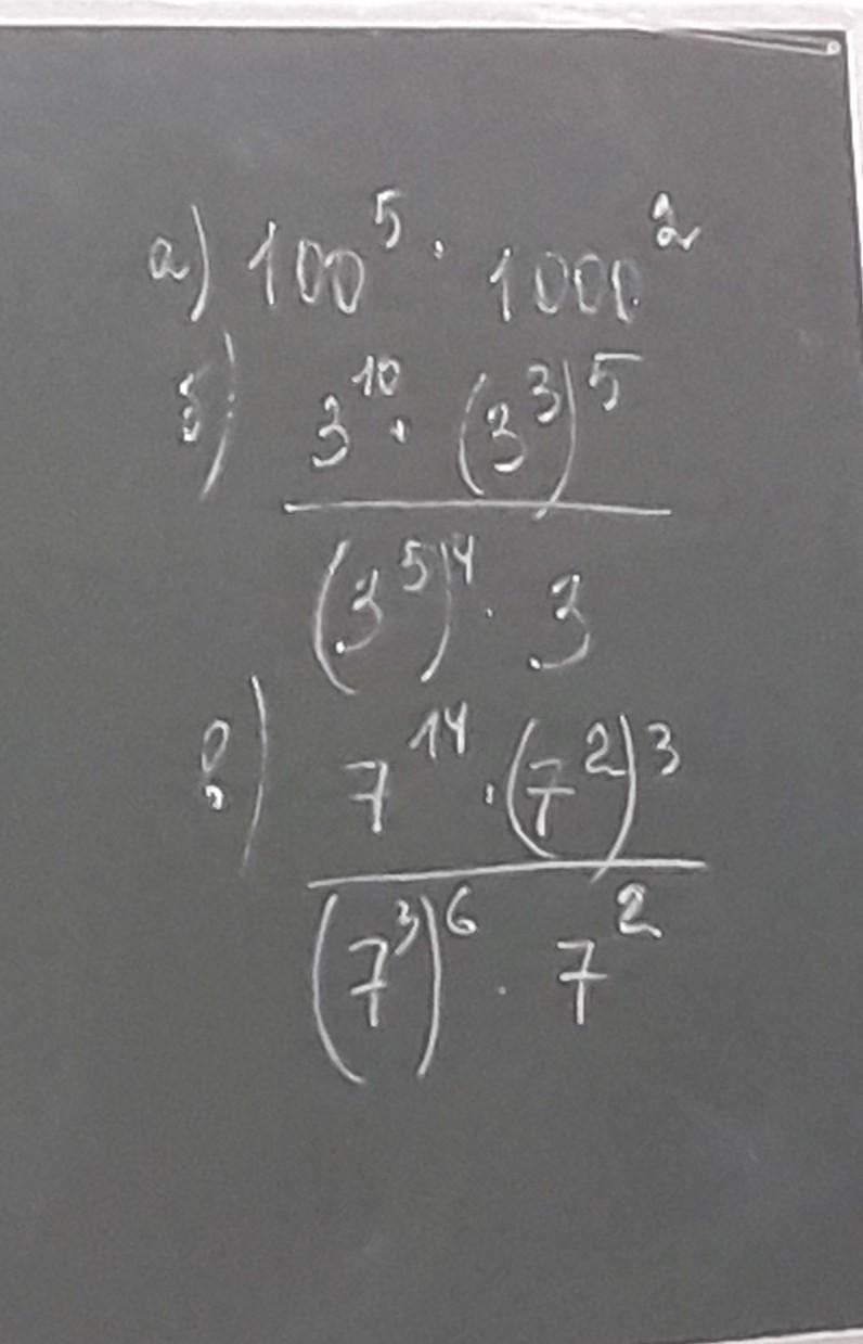 а) 100⁵×1000²=(10²)⁵×(10³)²=10¹⁰×10⁶=10¹⁶