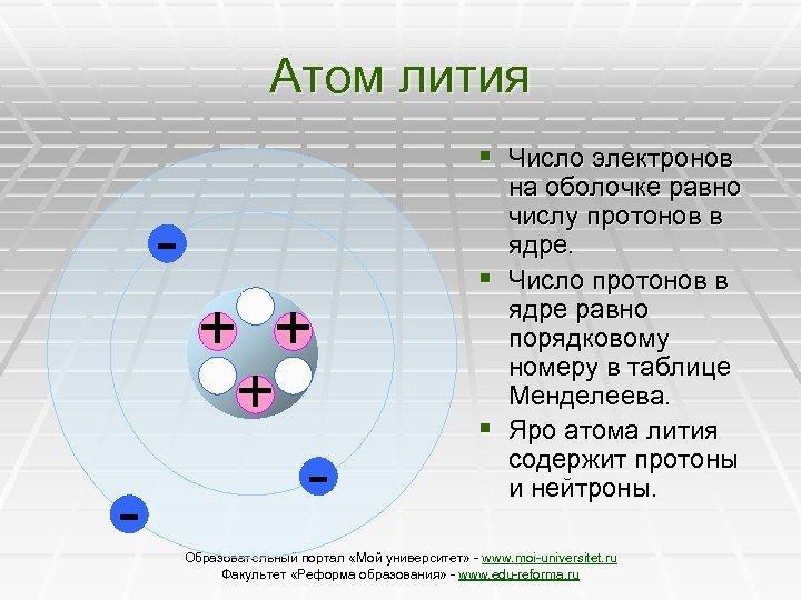 Например, порядковый номер лития (Li) равен 3, значит количество электронов тоже равно 3 - смотри 1 картинку (синие кружочки с минусами это и есть электроны)